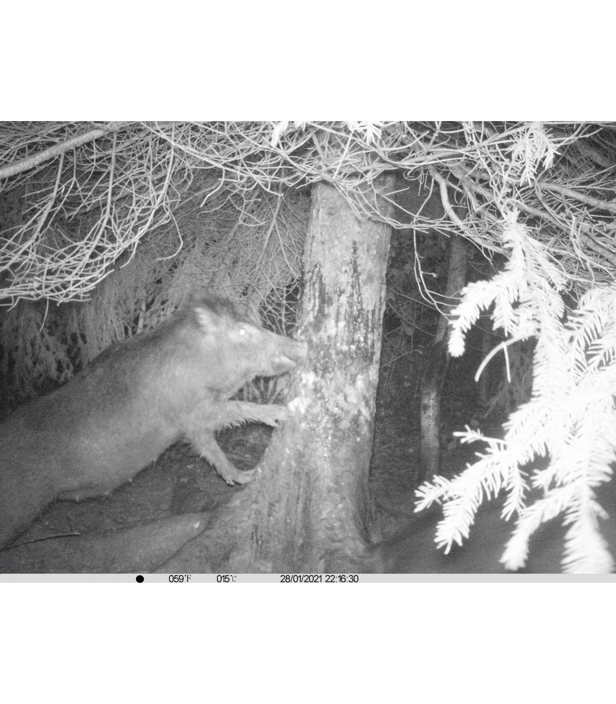 Pulvériser sur de petites éponges ou directement sur les emplacements retenus (souche, tronc, zone de passage) afin d’attirer les sangliers vers le point traité.