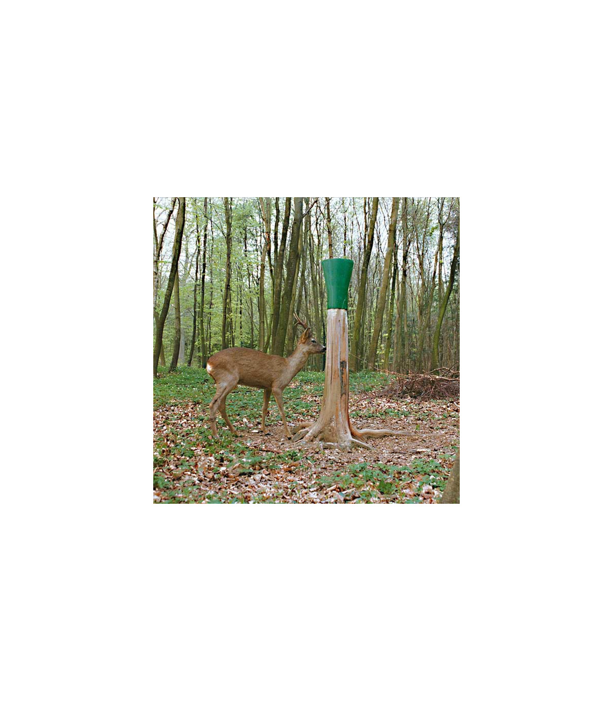 La SALINE VITEX est la solution recommandée pour distribuer vos minéraux sous forme de saumure : elle se place sur un baliveau d’environ 15 cm de diamètre, scié à environ 1,25 m du sol (visez 1 saline pour 10 ha). La partie supérieure conique (Ø 25 cm) est ouverte pour recevoir environ 5 kg de NATRON, de CRISTOMER ou une pierre de sel gemme, puis la pluie fait travailler le point naturellement.